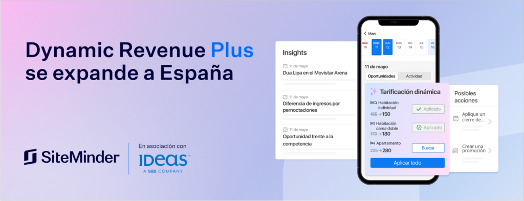 Dar respuesta a estas necesidades coincide con la expansión por parte de SiteMinder de su herramienta Dynamic Revenue Plus a determinados mercados del hemisferio norte, entre ellos España, tal y como se ha dado a conocer hoy en la ITB de Berlín. Desde su lanzamiento inicial el año pasado, Dynamic Revenue Plus ha sido la única solución para que los hoteles accedan a información del mercado en tiempo real y puedan tomar medidas inmediatas sobre su disponibilidad, precios y estrategia de distribución. Diseñada para que todos los establecimientos puedan acceder a una gestión de ingresos sofisticada, a diferencia de los sistemas de gestión de ingresos que tradicionalmente han estado al alcance de unos pocos, la doble capacidad de Dynamic Revenue Plus significa que cualquier hotel puede, por primera vez, utilizar un sistema móvil para optimizar sus ingresos en función de la demanda del mercado. A partir de hoy, el producto incorporará recomendaciones de precios dinámicos de IDeaS, una empresa de SAS y el principal proveedor mundial de software y servicios de gestión de ingresos, por lo que ya no se limitan a los hoteles con recursos dedicados a la gestión de ingresos.