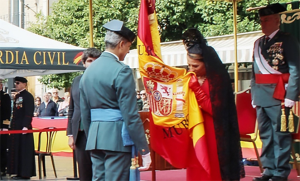 Encarna Piñero, CEO del Grupo Piñero, ha sido la madrina del acto militar en el que se ha hecho entrega de la bandera nacional donada por el Gobierno de la Región de Murcia a la Quinta Zona de la Guardia Civil.