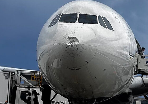 Así ha quedado el Airbus A330 que declaró emergencia en Barcelona por granizo